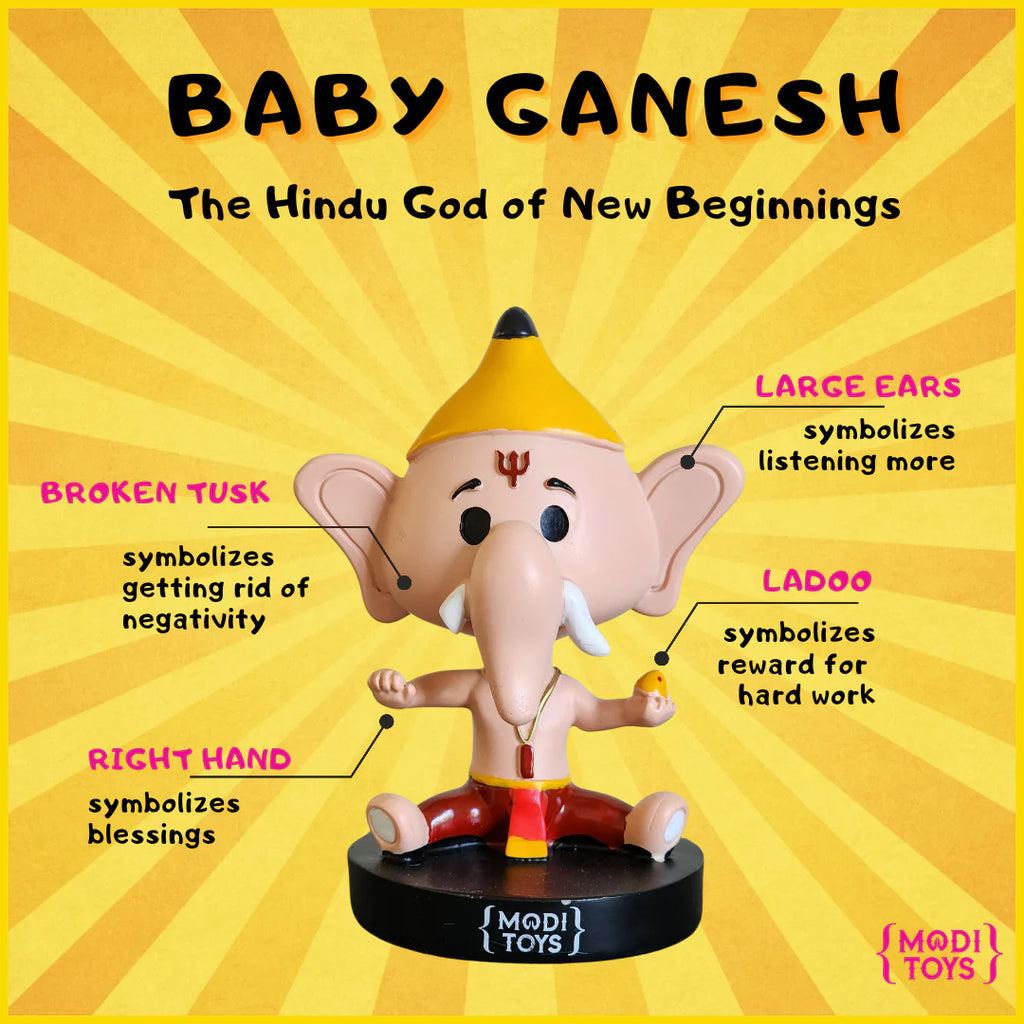 Whether you keep it at home, office, or on your car dashboard, the Baby Ganesh Bobblehead is bound to be an instant ice-breaker and a reminder that you always have someone looking over you, and wobbling through life, right beside you.