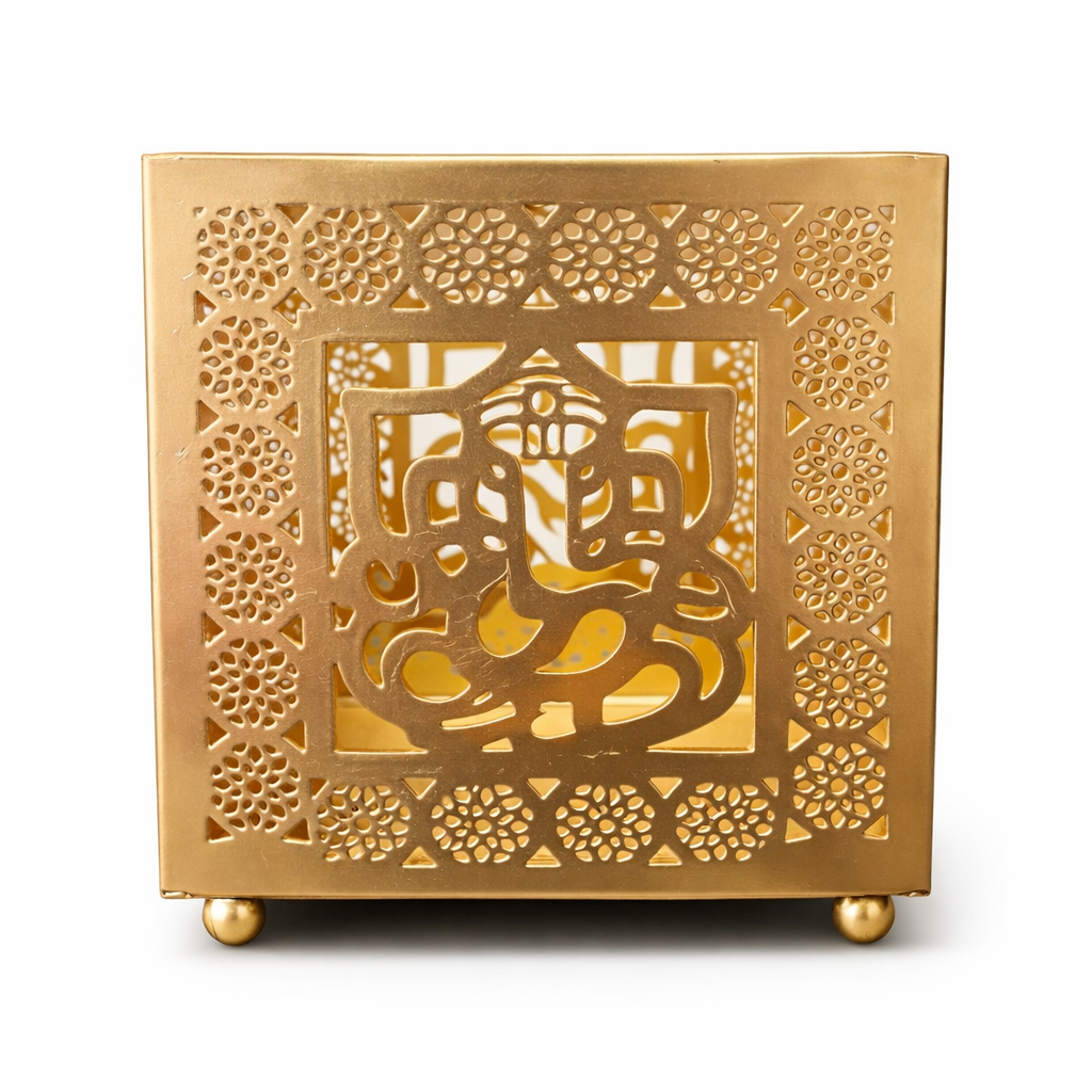 Ganesha Cutwork Metal Lantern – Gold Finish