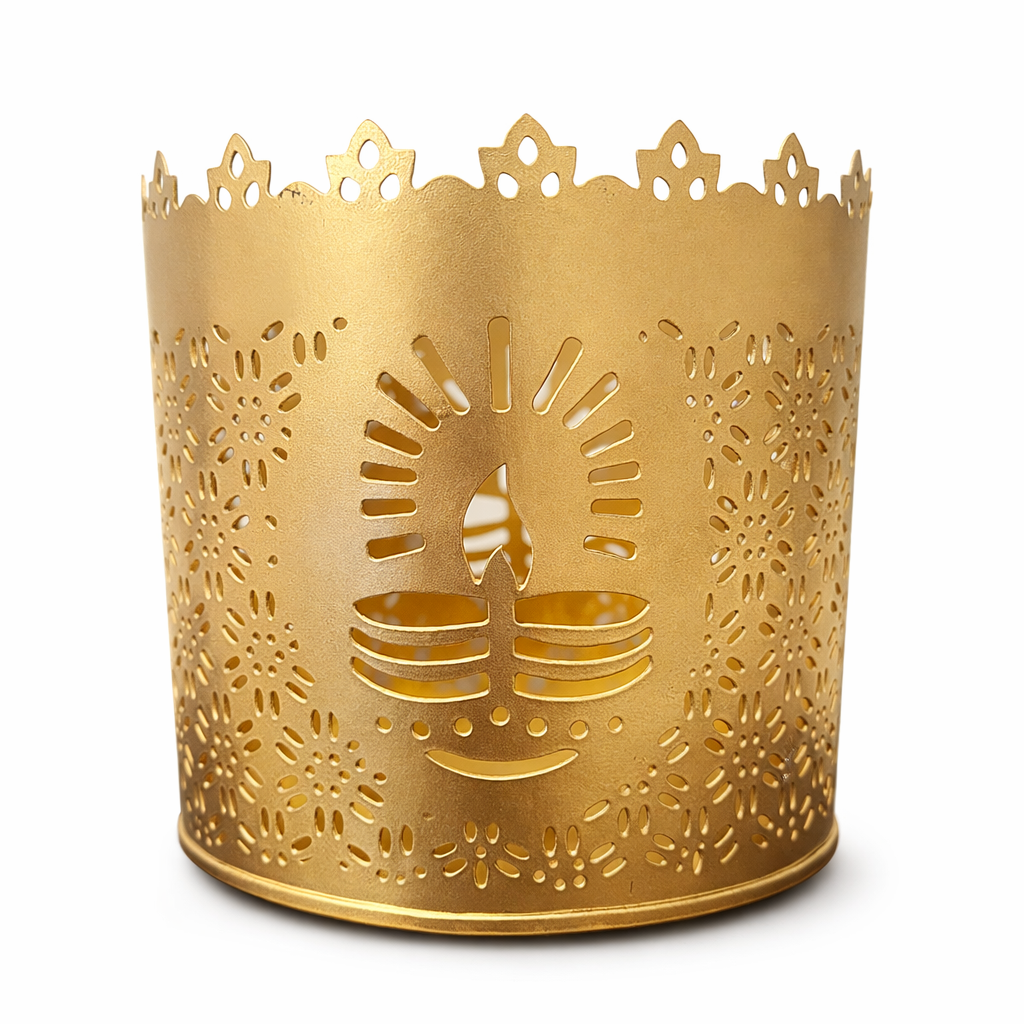 Diya Cutwork Metal Candle Holder – Gold Finish