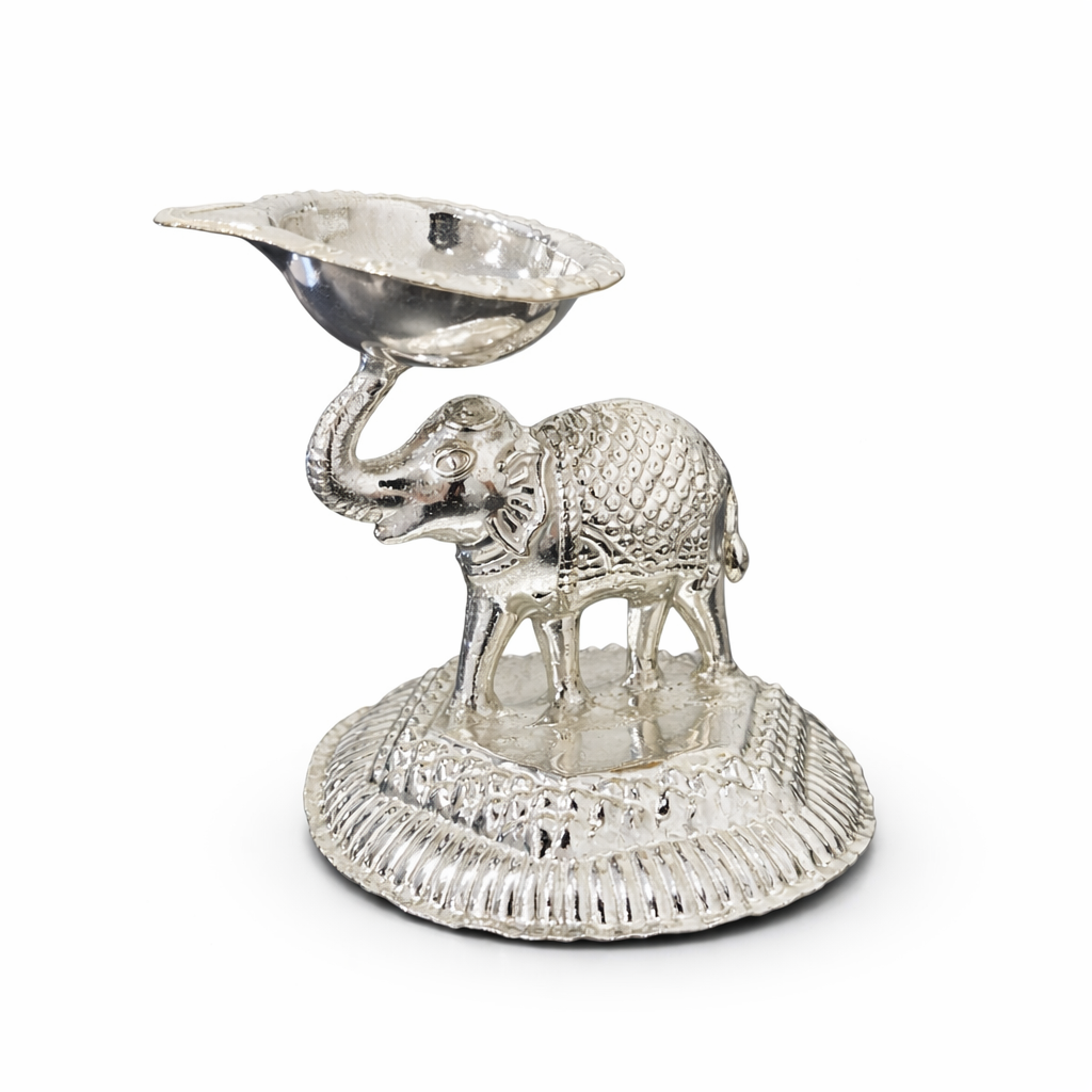 A timeless blend of devotion and craftsmanship, this German Silver Elephant Diya adds grace, warmth, and symbolic beauty to every prayer.