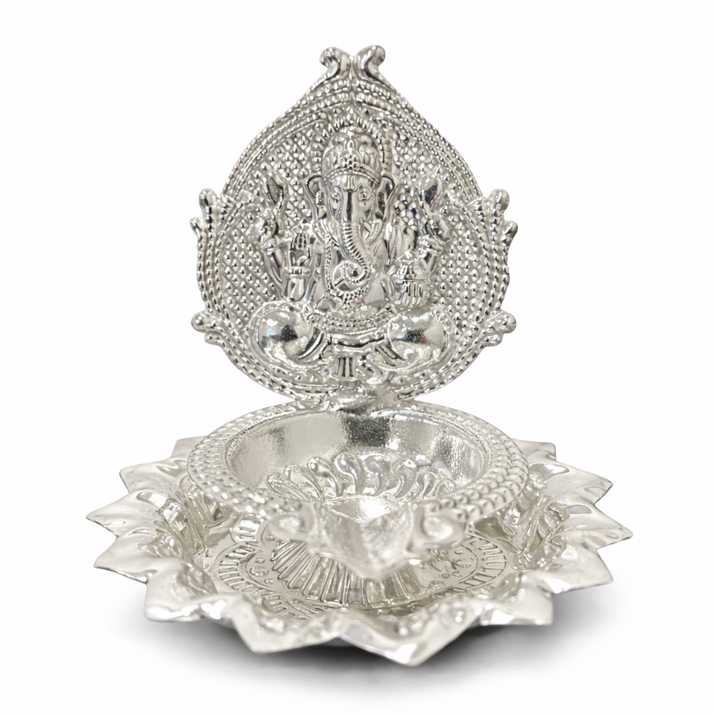 A timeless blend of devotion and craftsmanship, this German Silver Ganesha Diya brings grace, serenity, and divine light into every prayer.