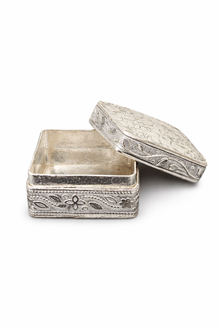 German Silver Sindoor Dabbi (Decorative Square Box)