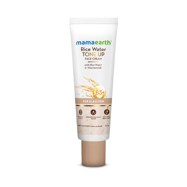 Ready for a glow-up that’s as instant as your morning coffee? Introducing Mamaearth Rice Water Tone Up Face Cream that visibly gleams & glows your skin in one go! Clinically tested for instant brightness*, it also hydrates your skin, making it soft & supple. With a non-greasy & quick-absorbing formula, this face cream is a powerhouse of ingredients that’ll give you a glass-skin glow. Rice water hydrates the skin while the antioxidants and amino acids keep aging at bay. Niacinamide evens out skin tone and fades those pesky spots. And to give you an extra dose of nourishment, Glycerin & Sodium Hyaluronate lock in moisture, leaving behind a natural, dewy finish. The cherry on top? Our Rice Water Tone Up Face Cream is Made Safe Approved, so you’re not just brightening up - you’re doing it toxin-free. *Based On Clinical Study Conducted With 30 Volunteers By A Third-Party Facility In 2024.
