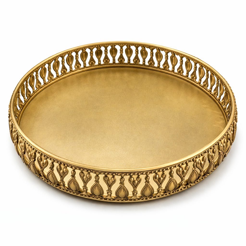 Antique Gold Decorative Thali – Classic Cutwork Design